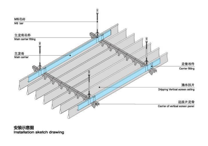 滴水铝挂片天花是一种敞透式设计的组合吊顶,它采用直插式简单快捷的安装法,双面见光,同时还可以双面喷涂同一种颜色,配合灯光的设计效果,可拼装出更加优美的装饰效果。